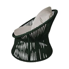 IMAGENS MERAMENTE ILUSTRATIVAS REALIZADO EDIÇÃO, PODENDO HAVER UMA PEQUENA VARIAÇÃO DE COR DEPENDENDO DE CADA TELA OU MONITOR.Poltrona Decorativa Estofada Sol com Almofada em Corda NÃutica e Base em AlumÃnio Preta/verde Musgo