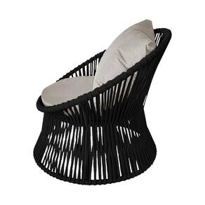 IMAGENS MERAMENTE ILUSTRATIVAS REALIZADO EDIÇÃO, PODENDO HAVER UMA PEQUENA VARIAÇÃO DE COR DEPENDENDO DE CADA TELA OU MONITOR.Poltrona Decorativa Estofada Sol com Almofada em Corda NÃutica e Base em AlumÃnio Preta