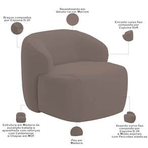 Poltrona Decorativa Fixa Orgânica Para Sala Living Barolo L06 Veludo Marrom - Lyam Decor