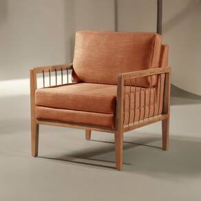Poltrona Decorativa Gael Madeira Maciça Terracota - Laranja