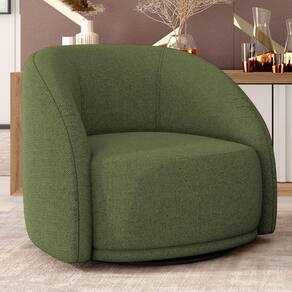 Características: Estrutura em madeira de reflorestamento de eucalipto, pinus e placas de OSB e imunizada contra mofo, cupim e microorganismos. Revestimento em Linho na cor Verde. Encosto e assento com cintas elásticas de sustentação de alta resistência. Assento, encosto e braças com espuma D-26 e manta acrílica. Base giratória de metal preto. Peso suportado: Até 120 kg.