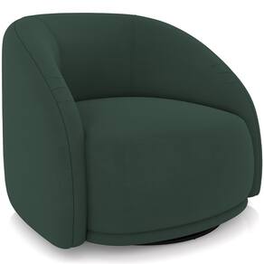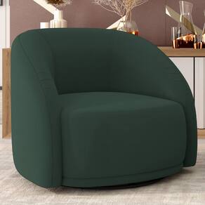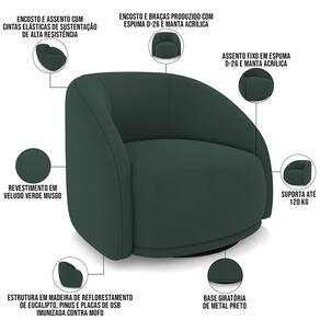 Características: Estrutura em madeira de reflorestamento de eucalipto, pinus e placas de OSB e imunizada contra mofo, cupim e microorganismos. Revestimento em Veludo na cor Verde Musgo. Encosto e assento com cintas elásticas de sustentação de alta resistência. Assento, encosto e braças com espuma D-26 e manta acrílica. Base giratória de metal preto. Peso suportado: Até 120 kg.