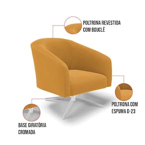 Tem novidades chegando por aqui! Olha só essa nossa inédita Poltrona Stella Bouclê. A Poltrona Stella Bouclê é para todas as ocasiões, é ideal para você relaxar, assistir tv ou ler um livro, mantendo-o confortável ao longo do dia! Um estofado versátil, que foge do convencional pelo seu design e tecido luxuoso. Seu formato curvo, marcante e sofisticado, oferece conforto de forma excepcional, com aquela sensação de abraço, que deixa o coração quentinho! Ela é fácil de transportar, pois tem um peso leve e um tamanho compacto. Ela suporta até 120 kg de peso, podendo ser utilizada por pessoas de diferentes biotipos. Desenvolvida com atenção aos detalhes para atender todas suas expectativas e necessidades, seu aspecto arredondado e anatômico possibilita que a postura fique sempre alinhada mantendo a coluna na posição correta. Ela dispõe de um acabamento impecável revestida em Bouclê em tom Mostarda, um tecido um tecido maleável que além de ser muito bonito é a grande tendência do momento, uma lã mais refinada e quente com toque suave semelhante à textura natural da ovelha. Contém uma estrutura em madeira de reflorestamento eucalipto, sua sustentação é dada pela Base Giratória Cromada, que garante mais segurança e firmeza ao sentar-se. Ela tem um acabamento reforçado e espuma de qualidade D23, que oferece maciez e aconchego. Além do mais ela tem assento com persintas elásticas, que proporcionam flexibilidade e conforto. A Poltrona Stella é um produto de alta qualidade, beleza e funcionalidade. Ah! Vale a pena lembrar que a Poltrona Stella Bouclê, foi produzida em quantidades limitadas para aqueles que procuram criar um visual diferenciado e exclusivo. Então, não deixe de aproveitar esse lançamento, hem! Leve seu Kit 02 Poltronas agora mesmo.