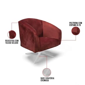 Poltrona Decorativa Giratória Cromada Stella Veludo Text Marsala D03 - D'rossi