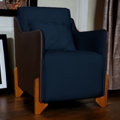 Poltrona Decorativa Heloisa Veludo Azul Marinho/Corano Marrom - Londrilar