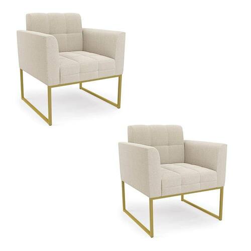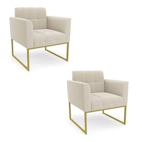 Poltrona Decorativa Industrial Dourado Kit 2 Elisa Bouclê D03 - D'rossi Cor Bege
