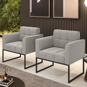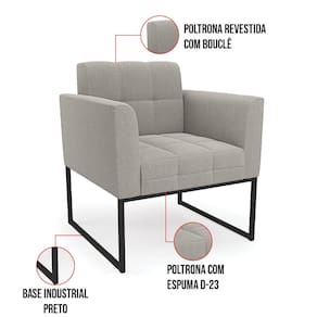 Poltrona Decorativa Industrial Preto Kit 2 Elisa Bouclê D03 - D`Rossi - Cinza