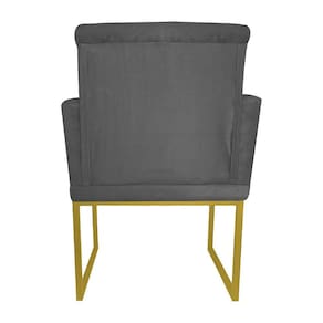 Poltrona Decorativa Klara Suede Cinza Base De Ferro Dourada - Vallisa Decor