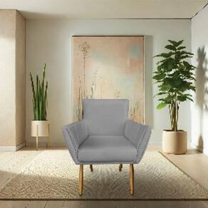 Poltrona Decorativa Leticia Suede Grafite Pés Palito Castanho - Pallazio - Cinza