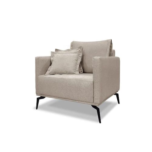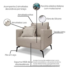 Poltrona Decorativa Livorno Linho Com Pés Em Aço - Ssx Multicoisas Cor Areia Para você que deseja deixar a sua sala ou escritório muito mais sofisticado, apresentamos esse lindo modelo de poltrona. A poltrona Livorno tem um design moderno e vai trazer todo o conforto que você precisa. Seu assento tem percintas elásticas italianas que são da melhor qualidade e vai aumentar a vida útil da poltrona, também tem a espuma de alta resiliência HR28 que são conhecidas pela elasticidade somada ao conforto se comparada às espumas tradicionais, e além da espuma HR28 o assento também tem plumante em silicone que vai trazer ainda mais conforto. Os braços são em madeira maciça com sapatinha e a almofada do encosto é de fibra de silicone. Confira as características e dimensões.Informações Técnicas:Tecido: LinhoEstrutura: Madeira EucaliptoMaterial Pés: Aço CarbonoDensidade da Espuma: HR28Assento: Fixo com percintas elásticas italiana, espuma HR28 e plumante em siliconeEncosto: Almofada solta em fibra de siliconePeso Suportado: Até 180 kgMontagem: O produto vai montado.Medidas:Altura total: 92 cmLargura total: 80 cmProfundidade total: 92 cmAltura do chão ao assento: 46 cmAltura do encosto: 46 cmProfundidade do assento: 54 cmAltura dos pés: 18 cmAltura do chão ao braço: 71 cmLargura do braço: 8 cmPeso: 27,5 kg