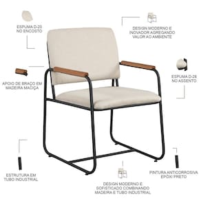 Poltrona Decorativa Ideal Para Salas E Recepções Estofamento Confortavel, Resistente E Reforçada, Base Com O Desing Moderno Que Combina Com Diversos Ambientes.