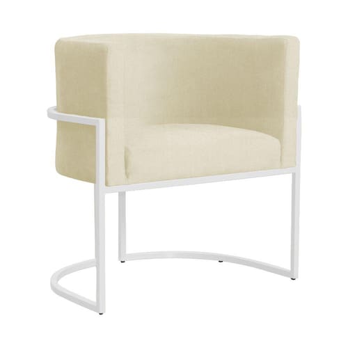 Poltrona Decorativa Luana Base Branca Suede Cores - S.A Móveis - Bege Claro