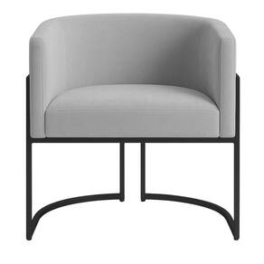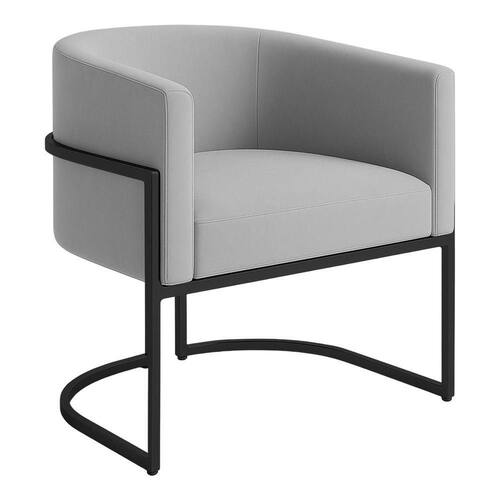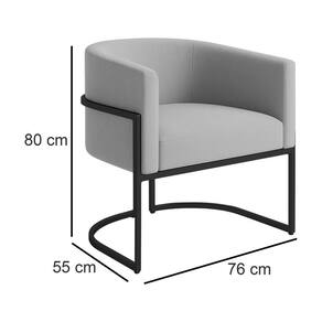 Revestida em tecido boucle, proporciona toque macio e brilho sofisticado, realçando sua presença em qualquer ambiente. Os pés metálicos com pintura preta complementam a elegância da peça, adicionando um detalhe refinado à sua base.