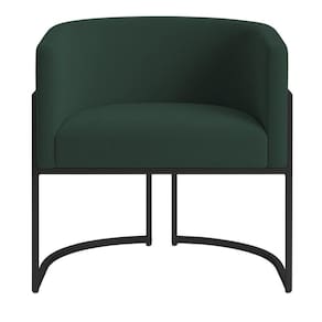 Revestida em tecido boucle, proporciona toque macio e brilho sofisticado, realçando sua presença em qualquer ambiente. Os pés metálicos com pintura preta complementam a elegância da peça, adicionando um detalhe refinado à sua base.