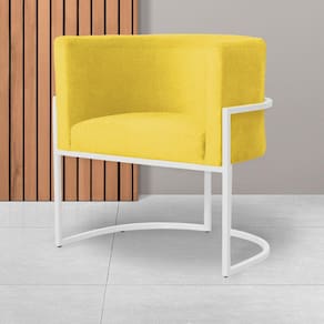 Poltrona Decorativa Luana Suede Amarelo Base Branca Mz Decor