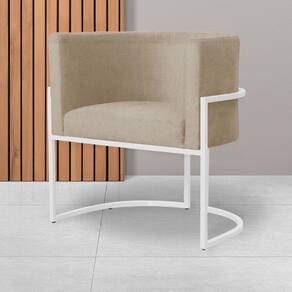 Poltrona Decorativa Luana Suede Capuccino Base Branca Ms Decor - Bege Médio