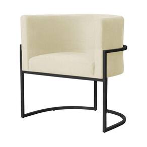Poltrona Decorativa Luana Suede Marfim Base Preta Ms Decor - Bege Claro