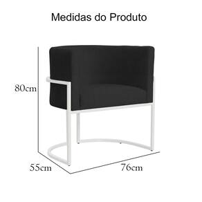 Poltrona Decorativa Luana Suede Preto Base Branca Mz Decor