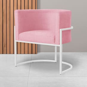 Poltrona Decorativa Luana Suede Rosa Base Branca Ms Decor