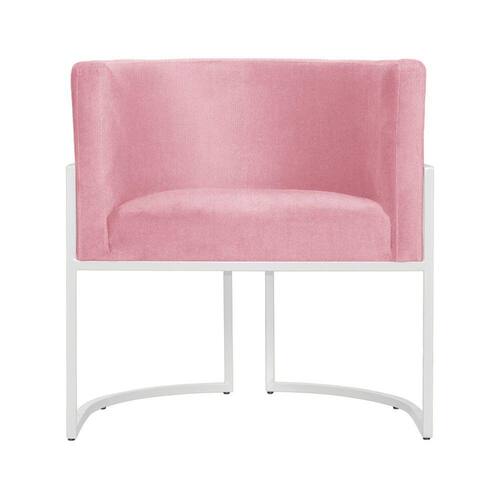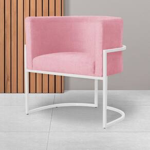 Poltrona Decorativa Luana Suede Rosa Base Branca Mz Decor