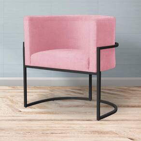 Poltrona Decorativa Luana Suede Rosa Base Preta Mz Decor