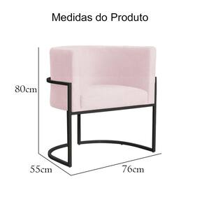 Poltrona Decorativa Luana Suede Rosa Bebê Base Preta Ms Decor