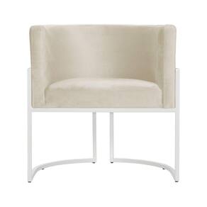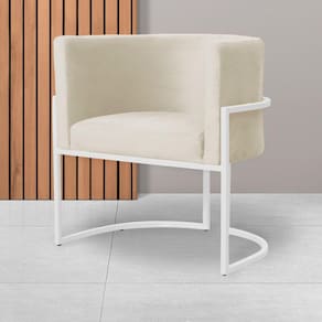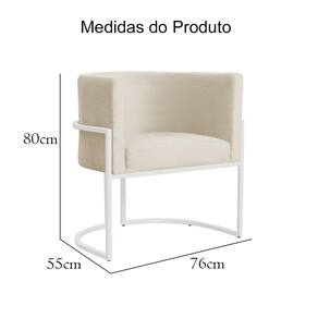 Poltrona Decorativa Luana Veludo Bege Base Branca Mz Decor