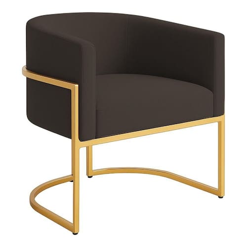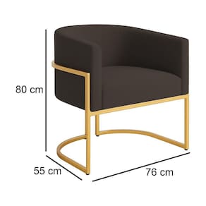 Revestida em tecido veludo, proporciona toque macio e brilho sofisticado, realçando sua presença em qualquer ambiente. Os pés metálicos com pintura dourada complementam a elegância da peça, adicionando um detalhe refinado à sua base.