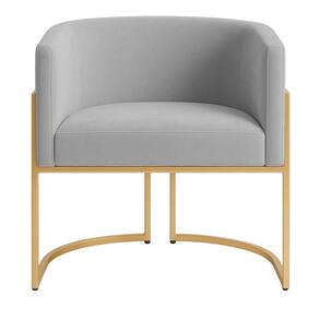 Revestida em tecido veludo, proporciona toque macio e brilho sofisticado, realçando sua presença em qualquer ambiente. Os pés metálicos com pintura dourada complementam a elegância da peça, adicionando um detalhe refinado à sua base.