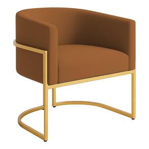 Revestida em tecido veludo, proporciona toque macio e brilho sofisticado, realçando sua presença em qualquer ambiente. Os pés metálicos com pintura dourada complementam a elegância da peça, adicionando um detalhe refinado à sua base.