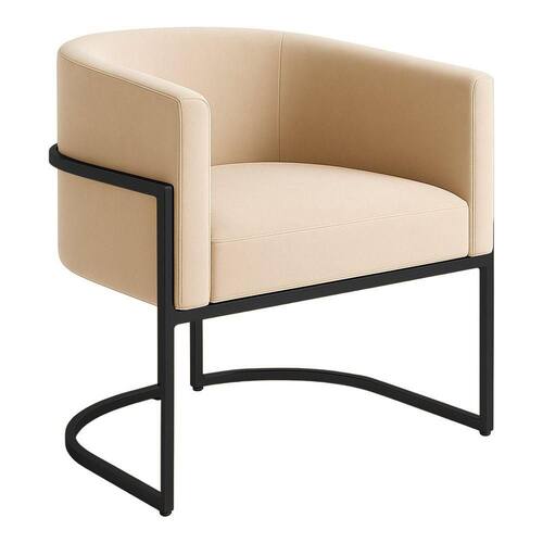 Revestida em tecido veludo, proporciona toque macio e brilho sofisticado, realçando sua presença em qualquer ambiente. Os pés metálicos com pintura preta complementam a elegância da peça, adicionando um detalhe refinado à sua base.