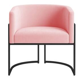 Revestida em tecido veludo, proporciona toque macio e brilho sofisticado, realçando sua presença em qualquer ambiente. Os pés metálicos com pintura preta complementam a elegância da peça, adicionando um detalhe refinado à sua base.