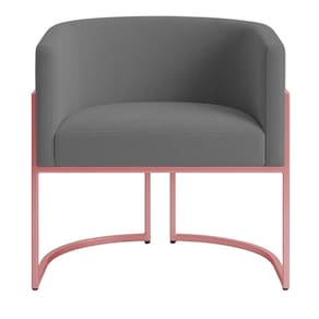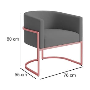Revestida em tecido veludo, proporciona toque macio e brilho sofisticado, realçando sua presença em qualquer ambiente. Os pés metálicos com pintura rosê complementam a elegância da peça, adicionando um detalhe refinado à sua base.