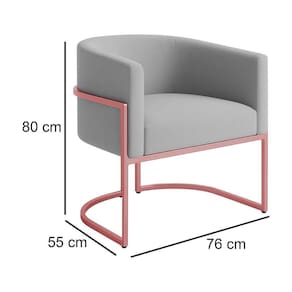 Revestida em tecido veludo, proporciona toque macio e brilho sofisticado, realçando sua presença em qualquer ambiente. Os pés metálicos com pintura rosê complementam a elegância da peça, adicionando um detalhe refinado à sua base.