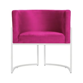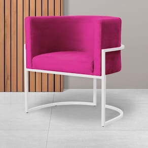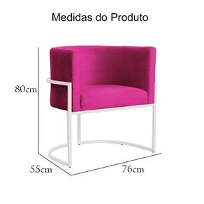 Poltrona Decorativa Luana Veludo Rosa Pink Base Branca Mz Decor