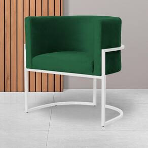 Poltrona Decorativa Luana Veludo Verde Base Branca Ms Decor