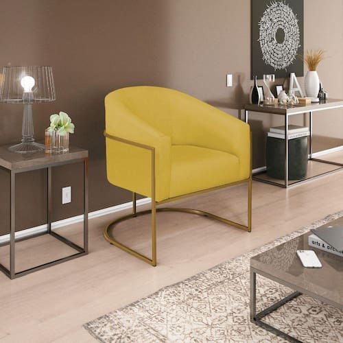 - A Poltrona Luiza Base de Ferro Dourado Suede chegará montada para você;