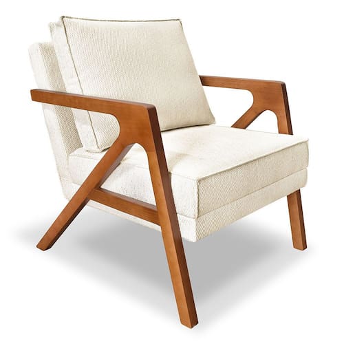 Poltrona Decorativa Luiza Linho Bouclê Bege Base em Madeira Castanho - Pallazio
