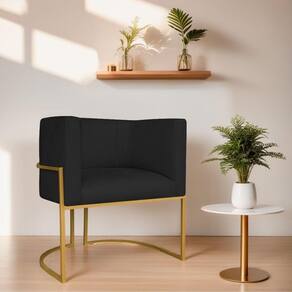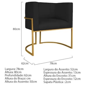 Poltrona Decorativa Luna Base De Ferro Dourado Sintético Cor Preto