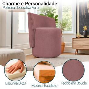 A Poltrona Aura combina elegância e conforto em um design compacto, perfeito para ambientes modernos e aconchegantes. Revestida com tecido bouclé, traz um toque de sofisticação e maciez ao espaço, é a escolha certa para quem busca qualidade, estilo e conforto em uma só peça.
