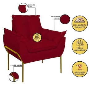 É Reclinável: Não | Desenho Do Tecido: Liso | Acessórios Incluídos: Não | É Sofá-Cama: Não | Estilo: Moderno | Cor Dos Pés: Dourado | Linha: Premium | Material do estofamento: Suede | Unidades Por Kit: 1 | Densidade Da Espuma Do Assento: D-23 | Material De Enchimento Do Encosto: Espuma | Requer Montagem: Não | Altura: 86,5 cm | Marca: Balaqui Decor | Tipo de Garantia: Garantia do Fabricante | Coleção de Antiguidade: Não | Móvel Dobrável: Não | Dimensão (A x L x C): 86,5 x 80 x 61 | Estofado: Suede | de Assentos: 1 | Duração da Garantia: 3 meses | Largura: 80 cm | País de Origem: | Profundidade: 61 cm | Peso do Item (itemWeight): 15 kg | Tipo de produto: Poltrona | Material: Madeira | Fabricante: Balaqui Estofados | Modelo: Poltrona Opala com Pés de Metal | Quantidade de Peças: 1 | Quantidade de caixas de embalagem: 1 | Peso suportado: 180 kg | Material dos pés: Metal | Materiais da estrutura: Madeira | É modular: Não | É Em forma de U: Não | É de canto: Não | É com chaise: Não | Quantidade de Lugares: 1 | Revestimento: Suede | Montagem: Montagem Completa Cor: Vermelho