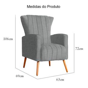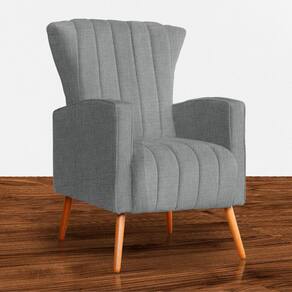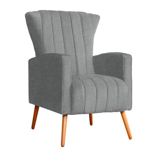 Poltrona Decorativa Melinda Linho Cinza Pés Madeira Mz Decor