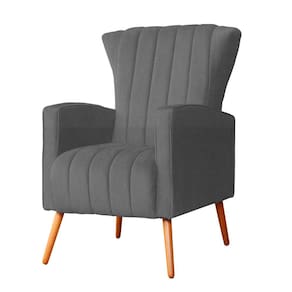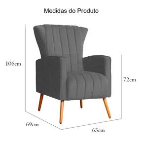 Poltrona Decorativa Melinda Suede Cinza Pés Madeira Ms Decor
