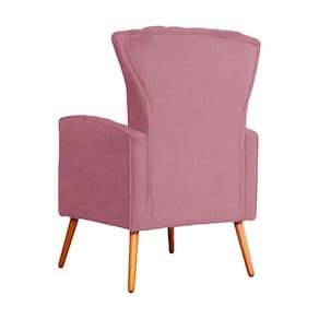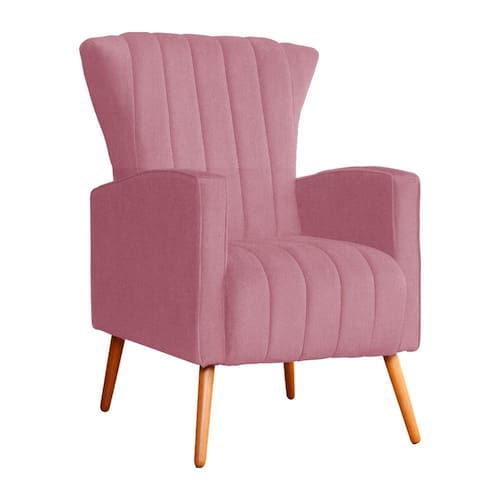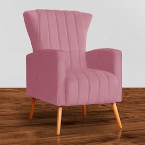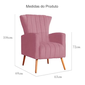Poltrona Decorativa Melinda Suede Rosa Pés Madeira Mz Decor