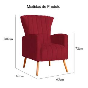 Poltrona Decorativa Melinda Suede Vermelho Pés Madeira Mz Decor
