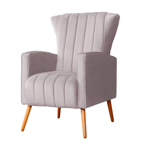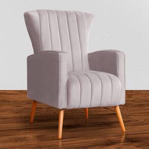 Poltrona Decorativa Melinda Veludo Rosê Pés Madeira Ms Decor