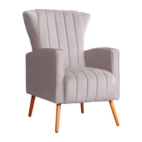 Poltrona Decorativa Melinda Veludo Rosê Pés Madeira Mz Decor
