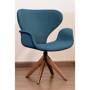 Poltrona Decorativa Mix Pé Giratório de Madeira - Azul Marinho