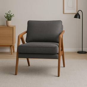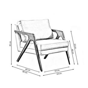 A Poltrona Monalisa apresenta dimensões que se adaptam perfeitamente a diferentes ambientes, com altura de 84 cm, largura de 62 cm e profundidade de 74 cm. Seu revestimento em linho bege traz um toque de elegância, enquanto os pés em madeira maciça de eucalipto garantem durabilidade e resistência.