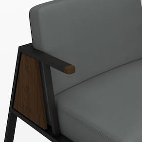 - Tonalidade: Preto Fosco (estrutura)/Imbuia (detalhe braço)/Suede Cinza (estofado)